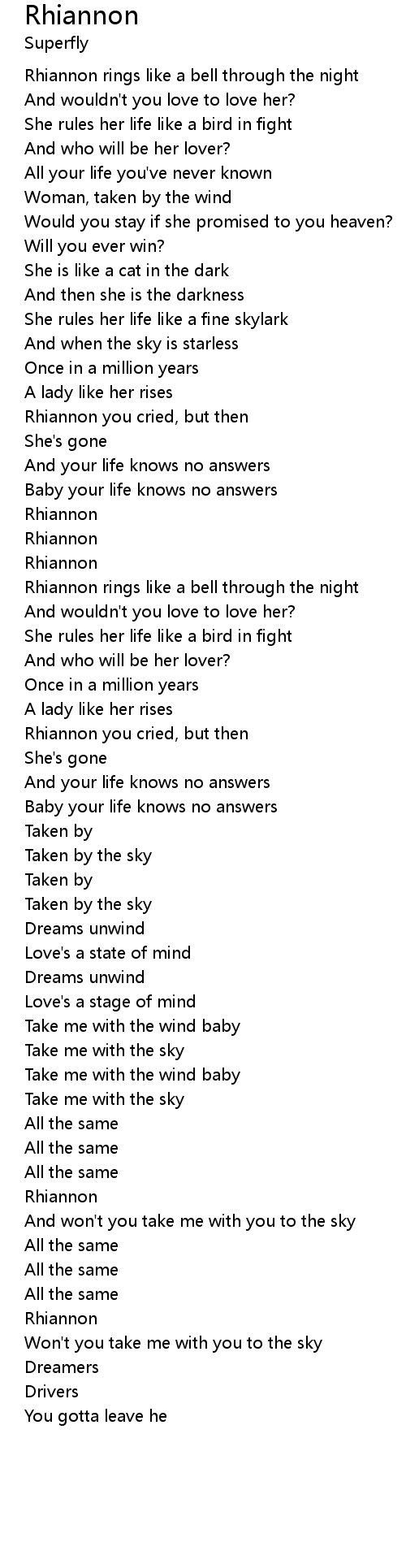 | Rhiannon you cried, but then | |