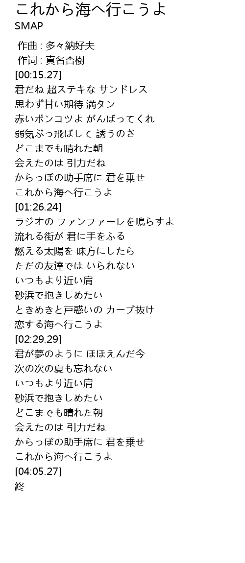| [03:55.45] | これから海へ行こうよ |