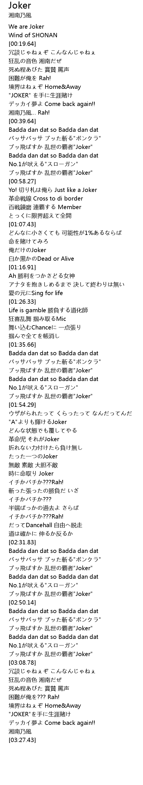 | [02:55.15] | ブッ飛ばすか 乱世の覇者"Joker" |