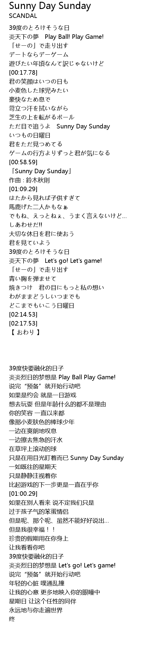 | [00:44.25] | ただ目で追うよ Sunny Day Sunday |