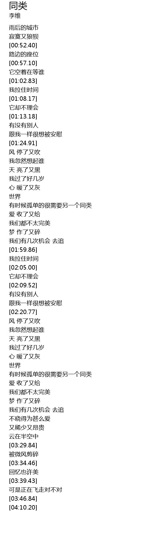 | [01:39.87] | 有时候孤单的很需要另一个同类 |