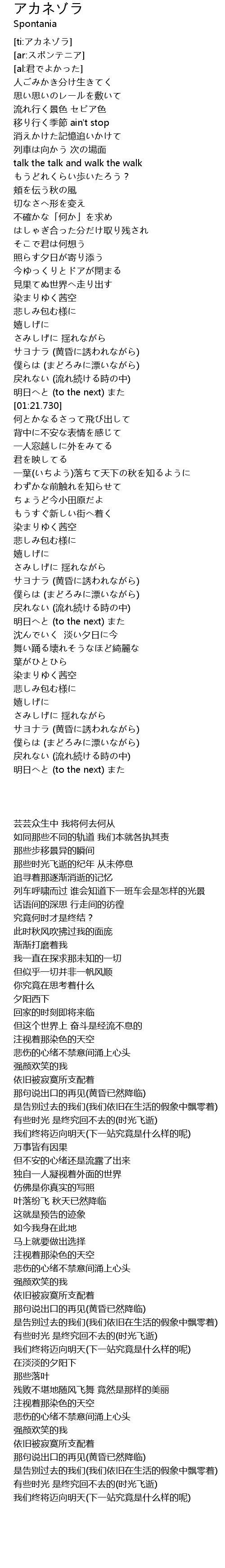 | [00:21.450] | 流れ行く景色 セピア色 |