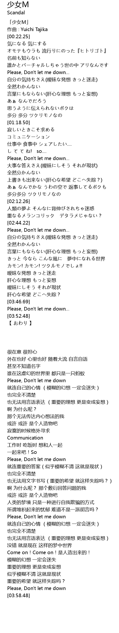 | [01:52.16] | 上書きも出来ない(肝心な希望 どこへ失踪?) |