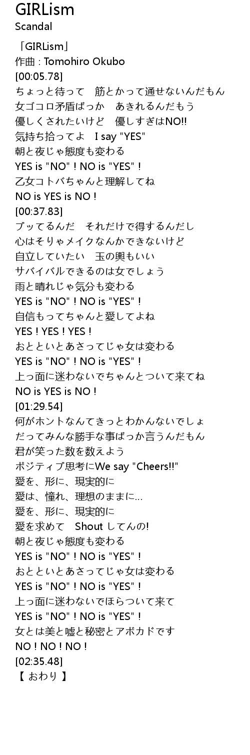 | [01:17.67] | YES is "NO" ! NO is "YES" ! |