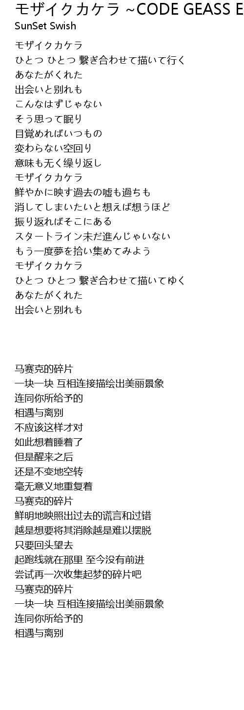 | 歌曲 | モザイクカケラ ~CODE GEASS Endeing Ver.~ |