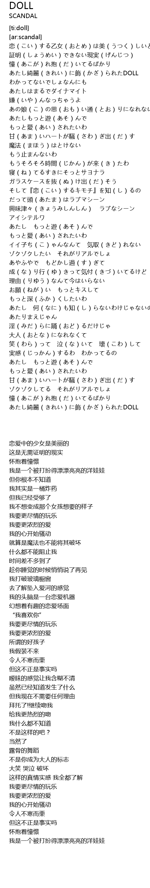 | [00:21.665] | あたし綺麗(きれい)に飾(かざ)られたDOLL |