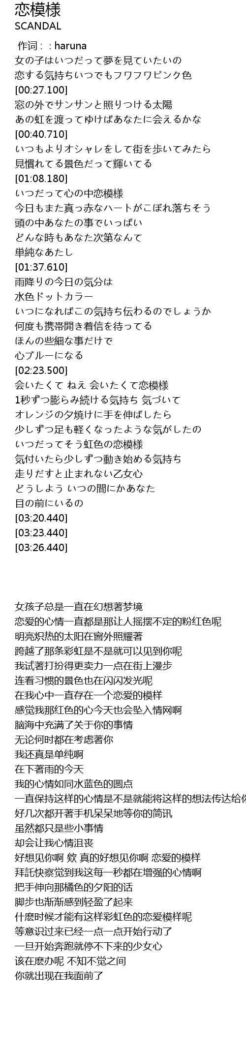 | [02:52.620] | いつだってそう虹色の恋模様 |