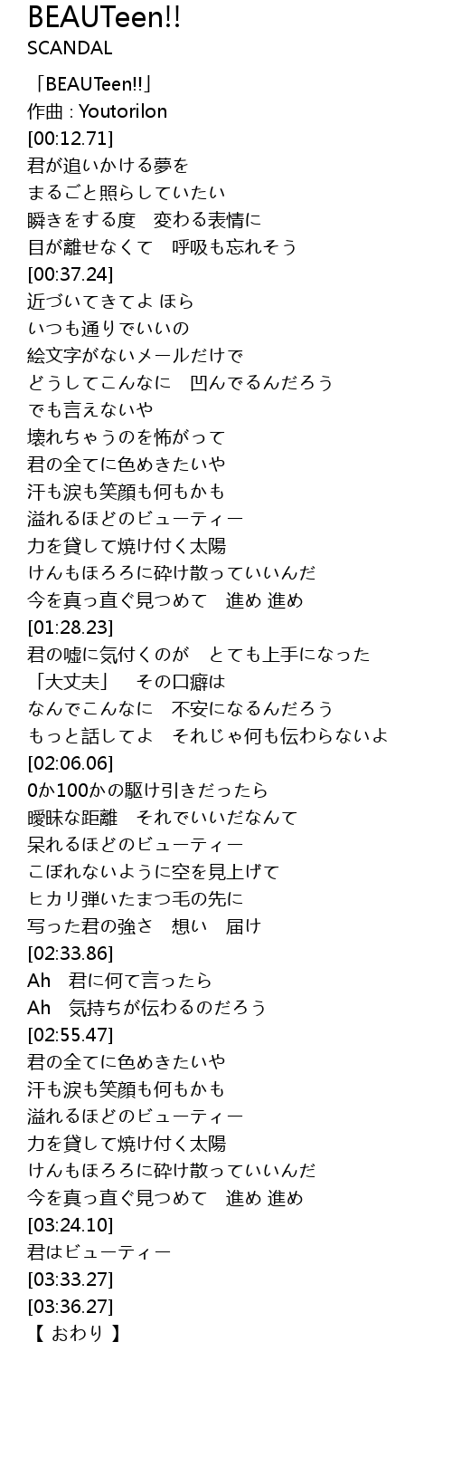 | [03:12.26] | けんもほろろに砕け散っていいんだ |