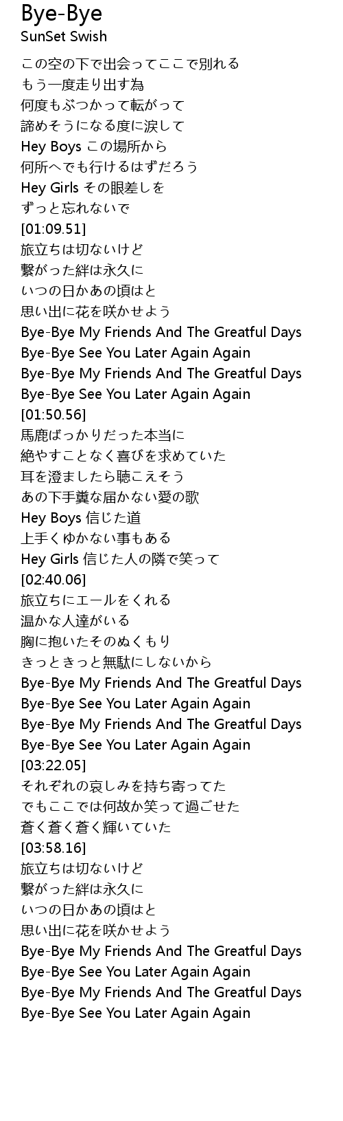 | [01:36.36] | Bye-Bye See You Later Again Again |