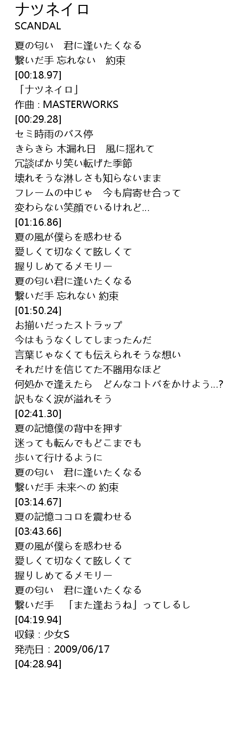 | [04:02.98] | 夏の匂い 君に逢いたくなる |