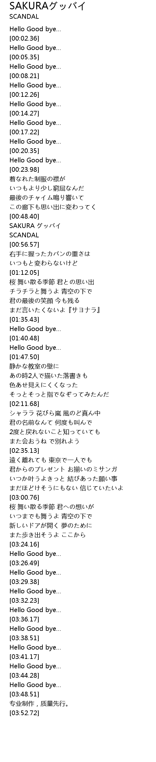 | [01:12.35] | 桜 舞い散る季節 君との思い出 |