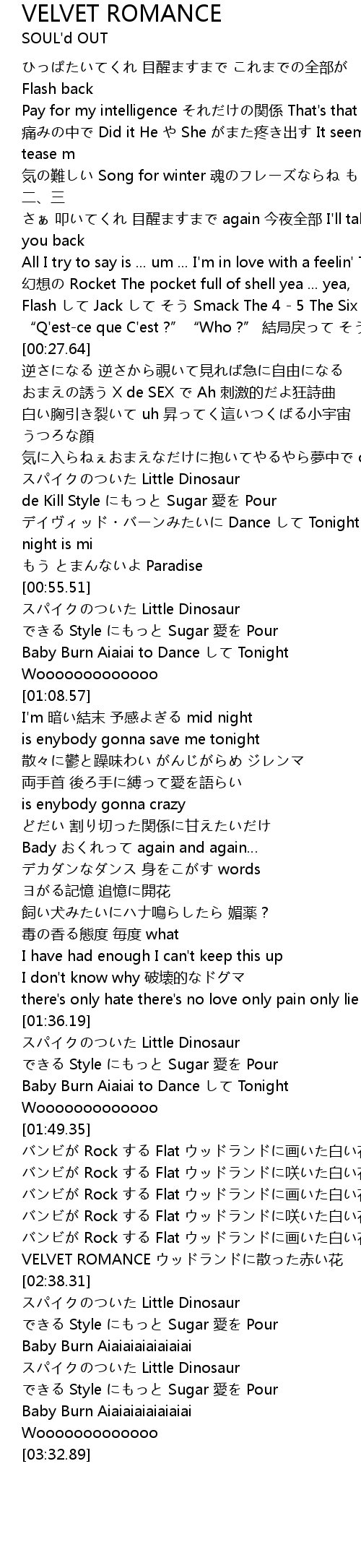 | [02:34.95] | VELVET ROMANCE ウッドランドに散った赤い花 |