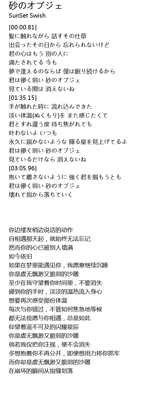 | [01:12.45] | 君は儚く弱い 砂のオブジェ |