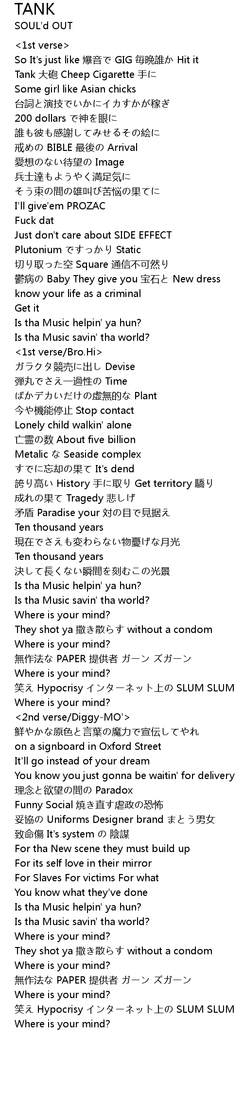 | 歌曲 | TANK |