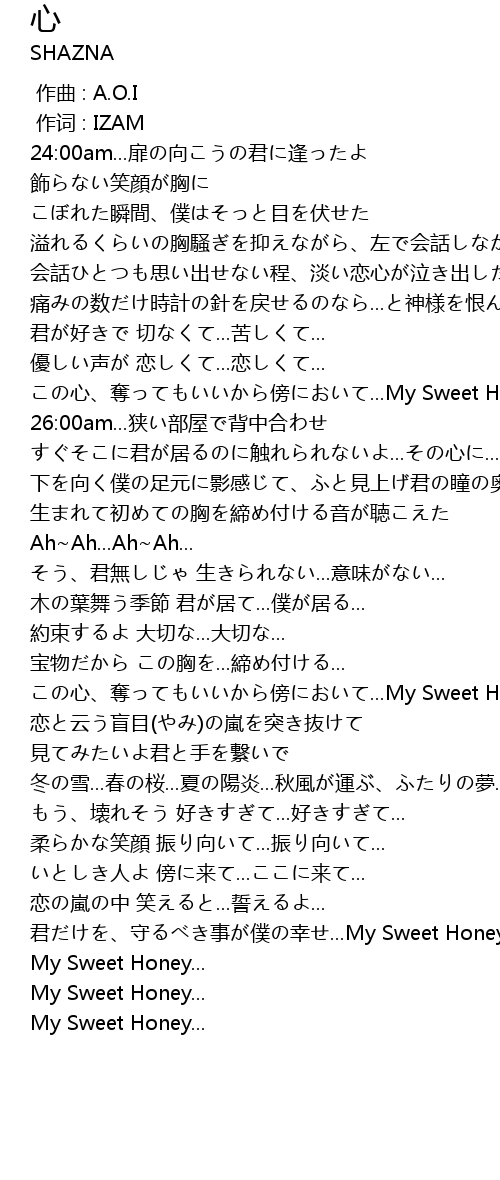 | [03:20.34] | この心、奪ってもいいから傍において...My Sweet Honey |
