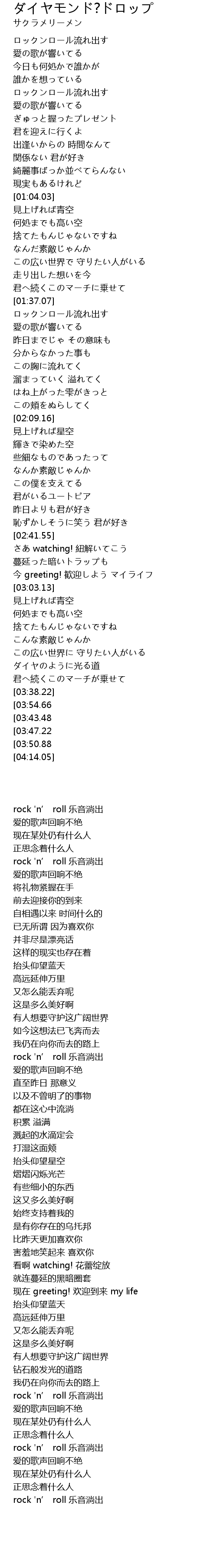 | [04:09.53][03:54.66][03:39.84] | ロックンロール流れ出す |