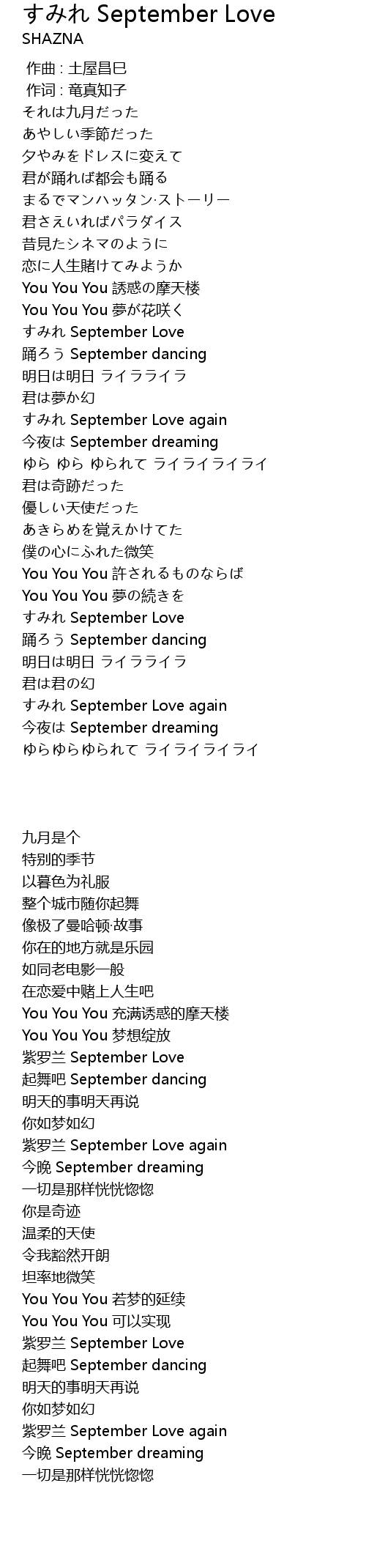 | [02:55.32] | 起舞吧 September dancing |