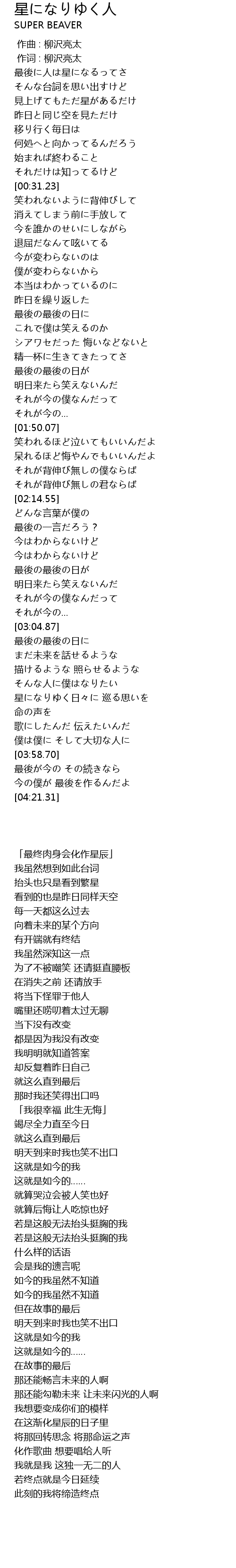 | [03:29.01] | 星になりゆく日々に 巡る思いを |