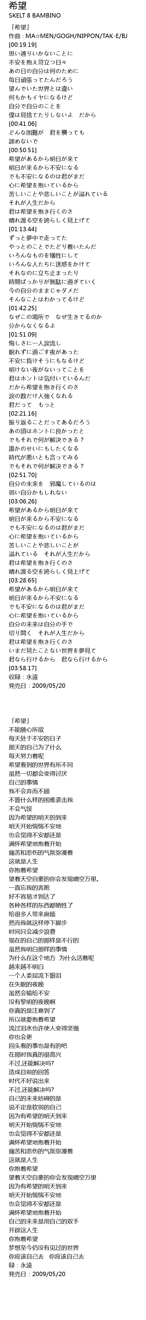 | [00:01.19] | 「希望」 |