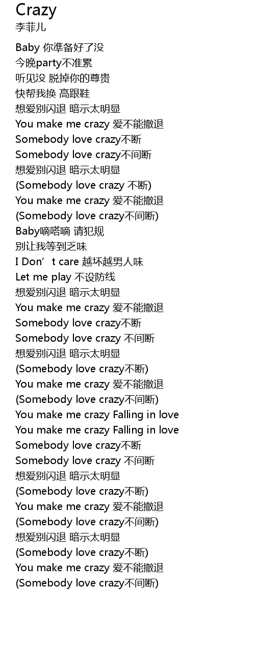 | [01:51.71] | Somebody love crazy bu jian duan |
