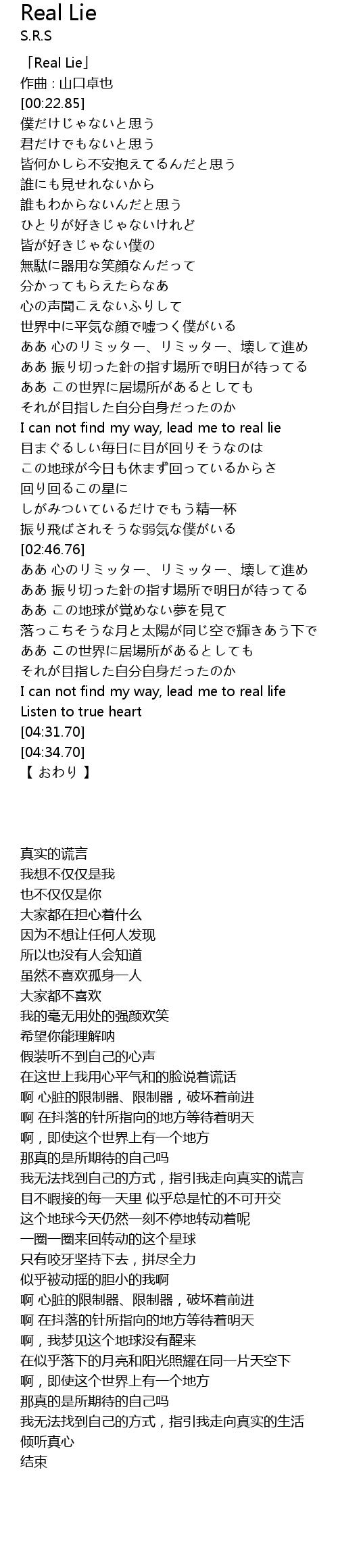 | [00:01.85] | 「Real Lie」 |