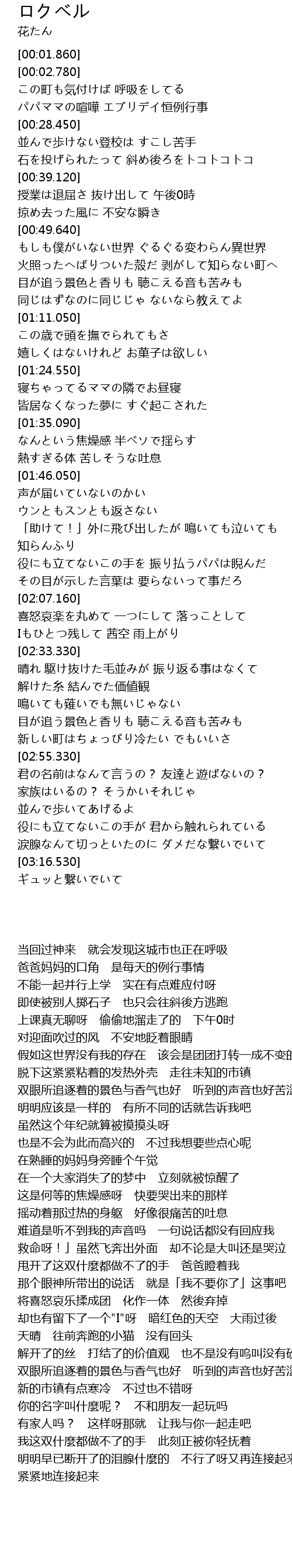 | [02:55.740] | 君の名前はなんて言うの? 友達と遊ばないの? |