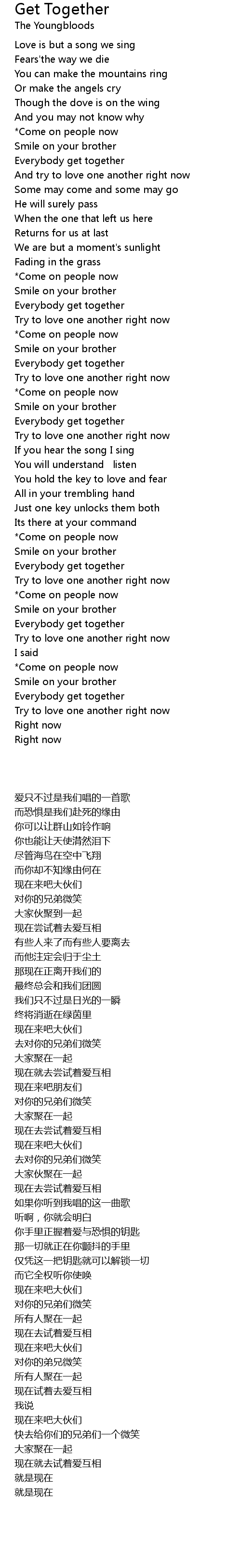And try to love one another right now |