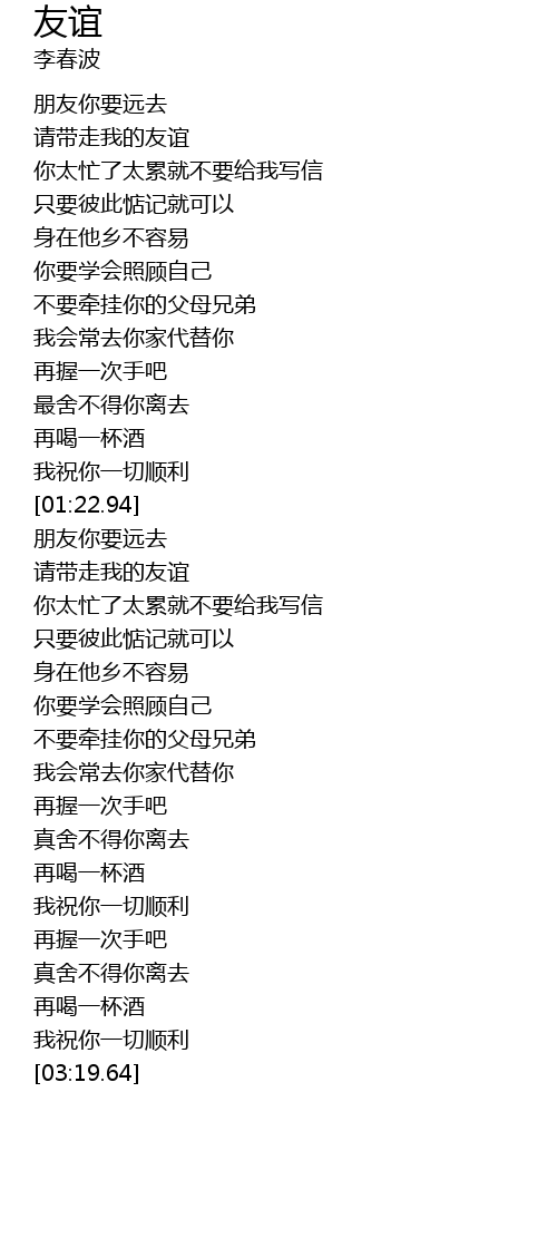 | [01:54.50] | péng yǒu nǐ yào yuǎn qù |