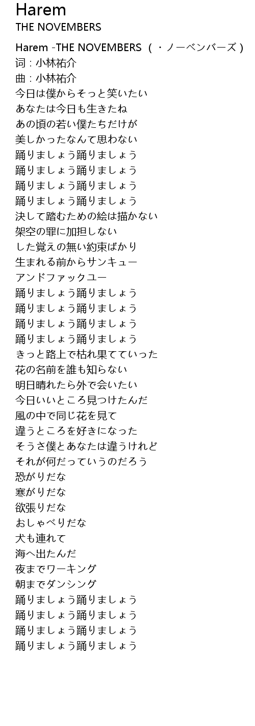 | [00:00.00] | Harem -THE NOVEMBERS (・ノーベンバーズ) |