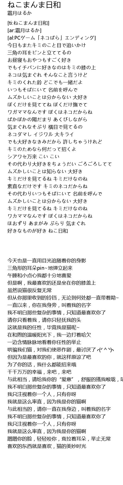 | [01:09.43] | ワガママなんです ぼくはネコだからね |