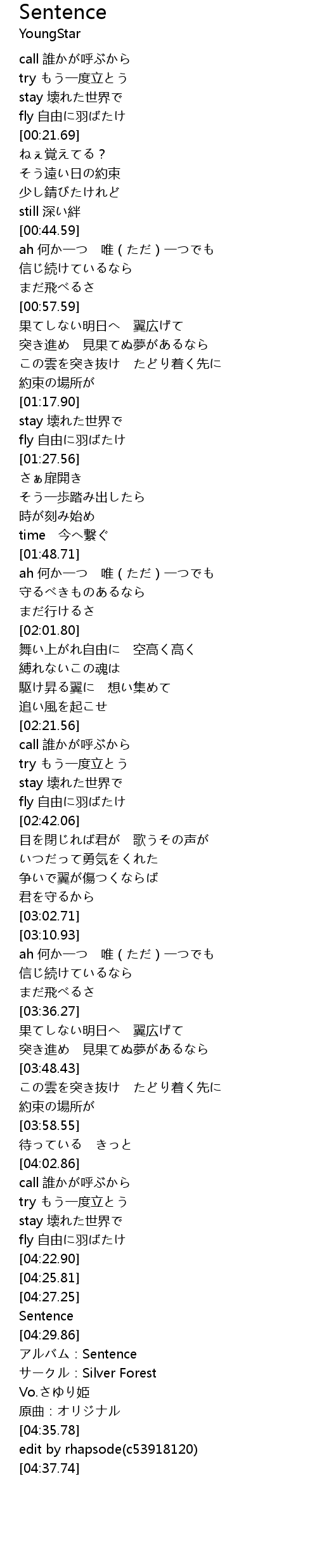 | [04:31.01] | アルバム:Sentence |