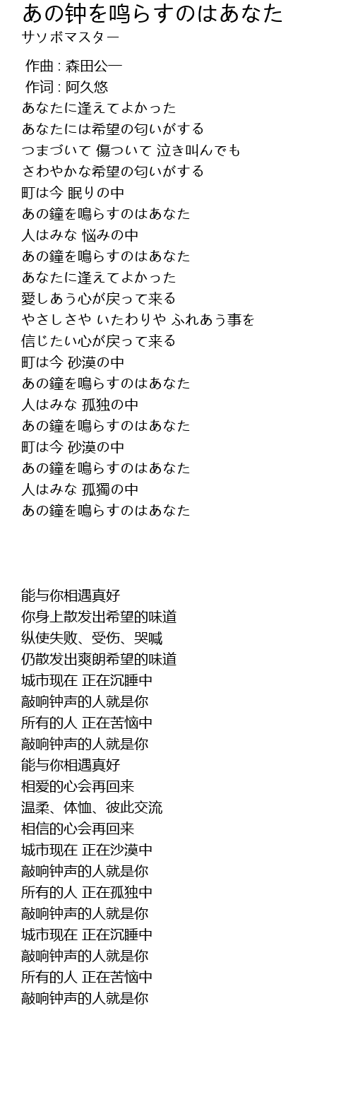 | 歌曲 | あの钟を鸣らすのはあなた |