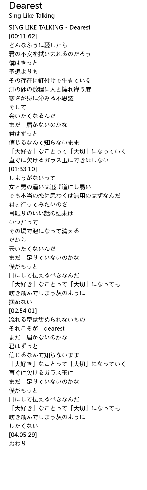 | [00:00.00] | SING LIKE TALKING - Dearest |