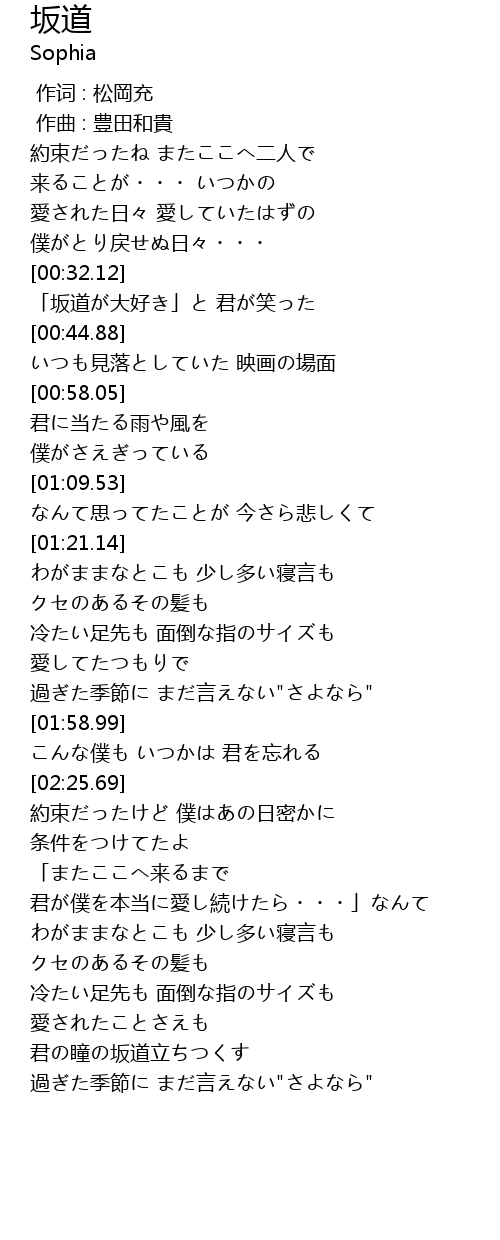 | 歌曲 | 坂道 |
