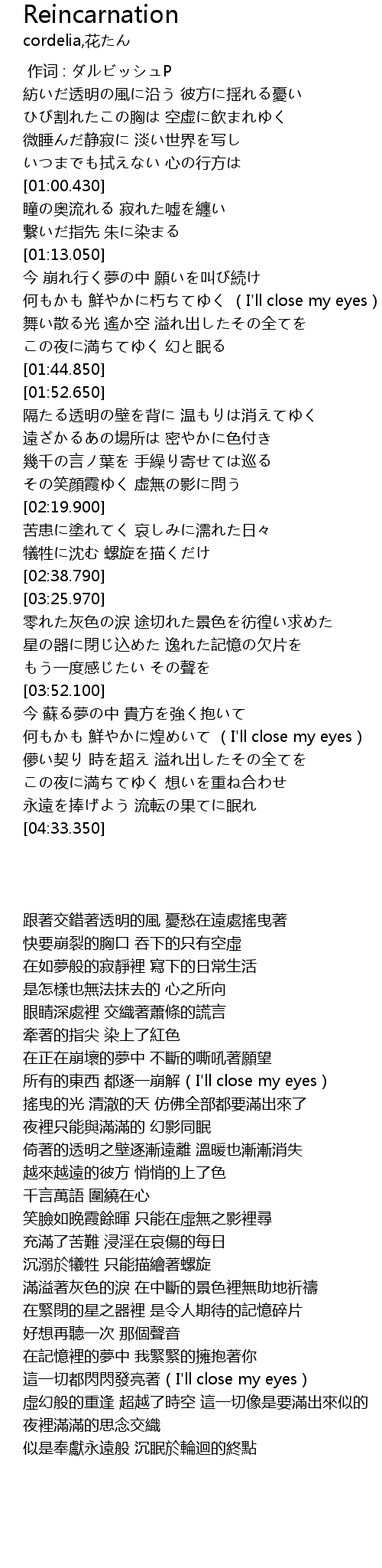 | [04:19.470] | 似是奉獻永遠般 沉眠於輪迴的終點 |