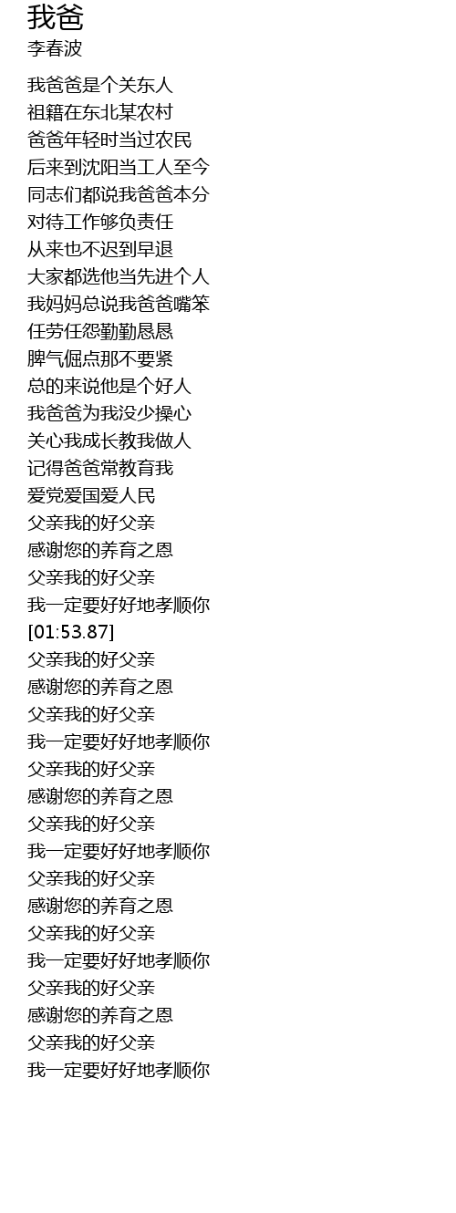 | [00:40.47] | 同志们都说我爸爸本分 |