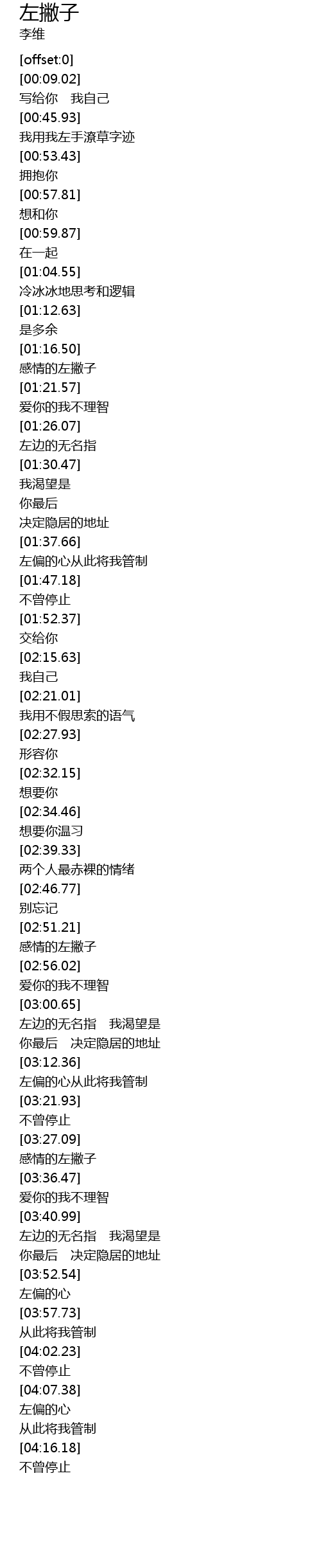 | [03:01.46] | 左边的无名指 我渴望是 |