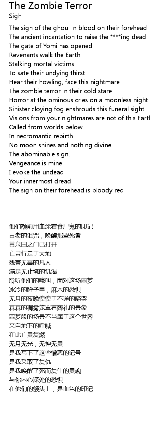 The zombie terror in their cold stare |