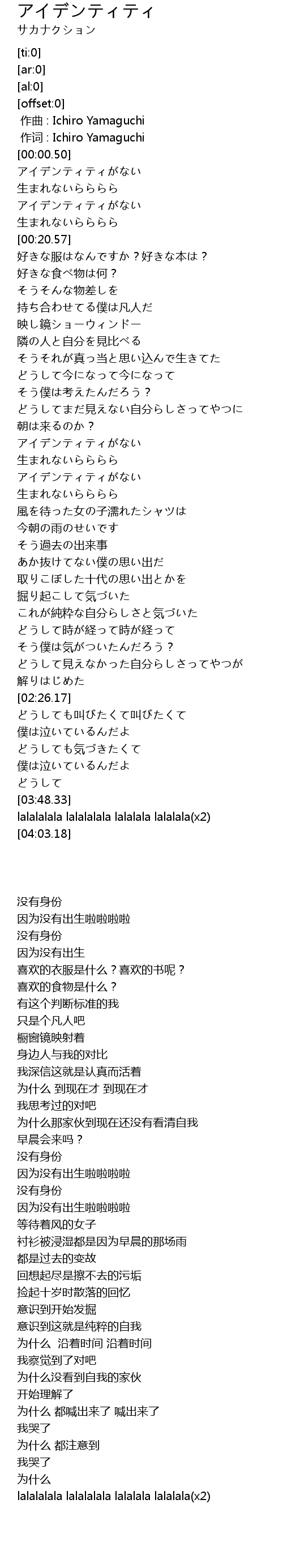 | [03:48.87] | lalalalala lalalalala lalalala lalalala(x2) |