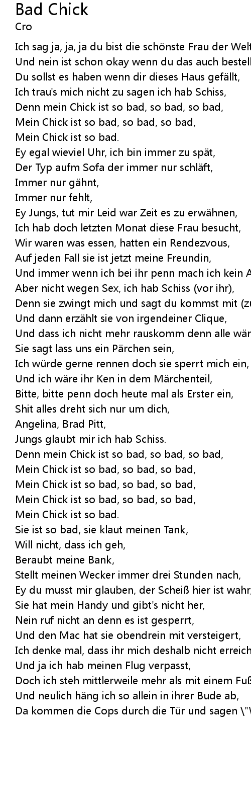 | Denn mein Chick ist so bad, so bad, so bad, | |