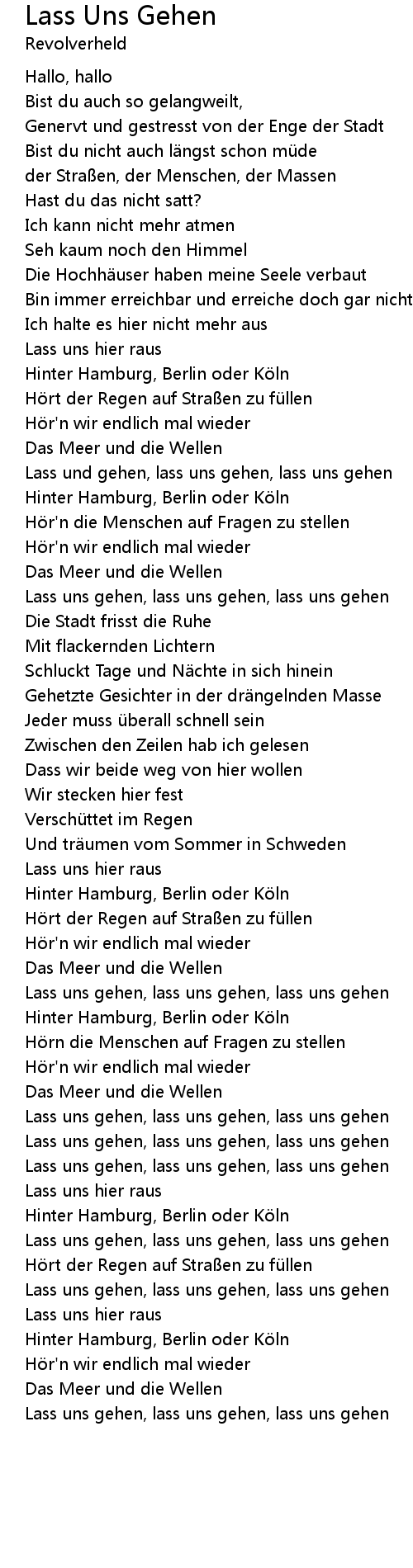| Lass uns gehen, lass uns gehen, lass uns gehen | |