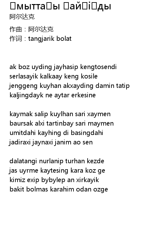 | 作词:tangjarik bolat | |