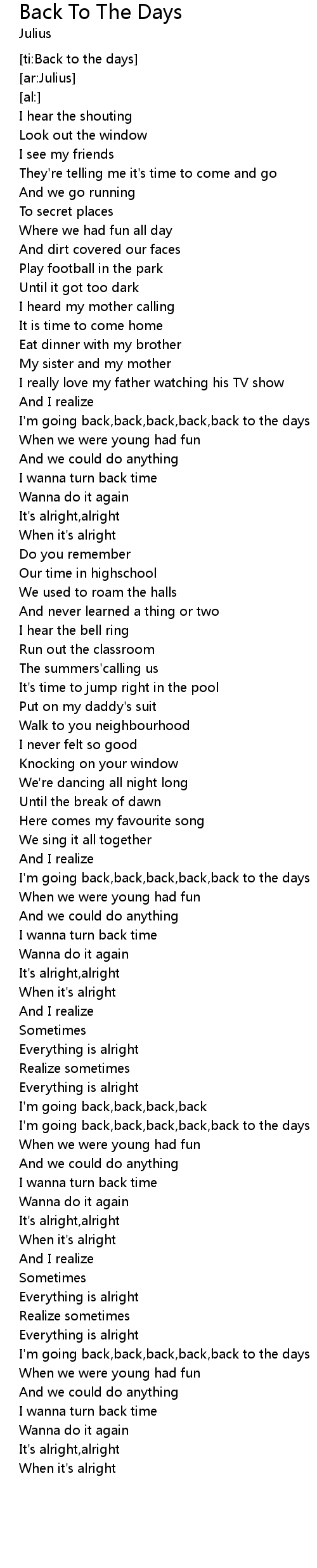 Back To The Days 歌词