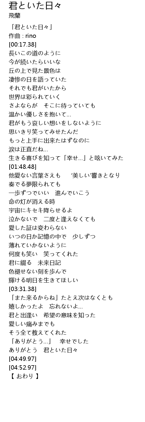 | [00:01.38] | 「君といた日々」 |