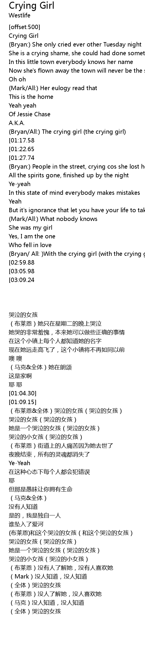 (Bryan/All:) The crying girl (the crying girl) |
