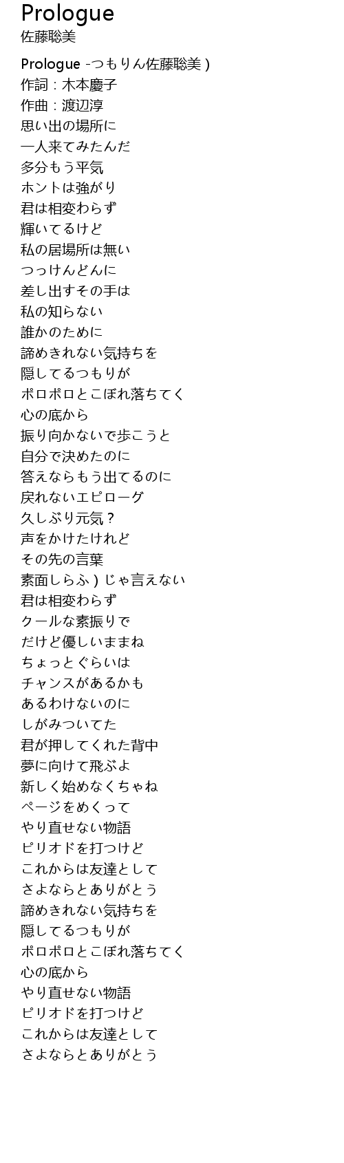| [00:00.670] | Prologue -つもりん佐藤聡美) |