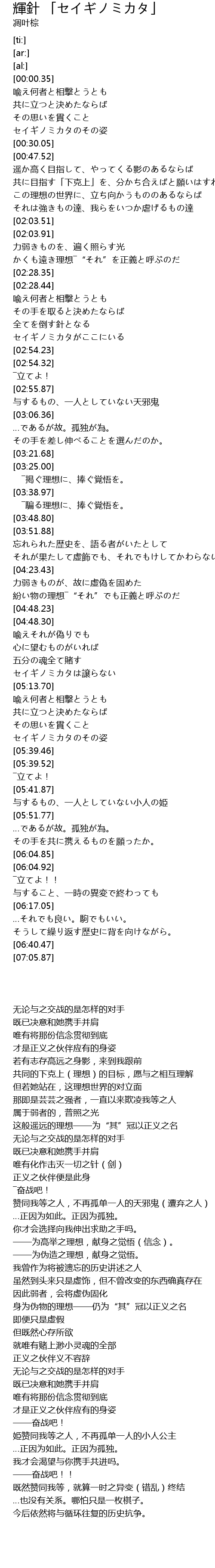 | [03:39.06] | ——为伪造之理想,献身之觉悟。 |