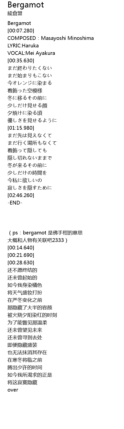 | [00:00.870] | (ps:bergamot 是佛手柑的意思 大概和人物有关联吧2333) |