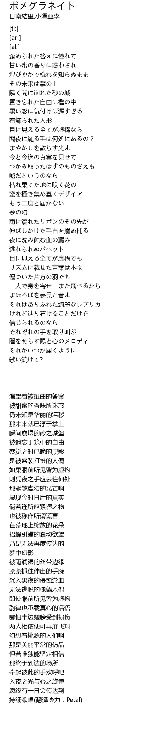 | [03:41.71] | 持续歌唱(翻译协力:Petal) |