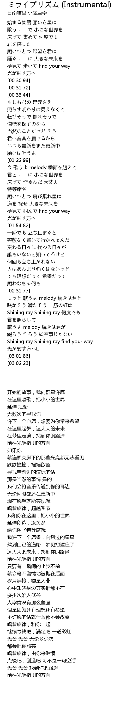 | [02:39.31] | Shining ray Shining ray 何度でも |